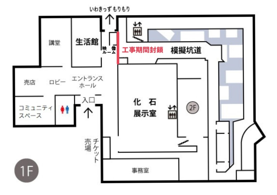 館内工事に伴う模擬坑道の見学制限による観覧料無料のお知らせ